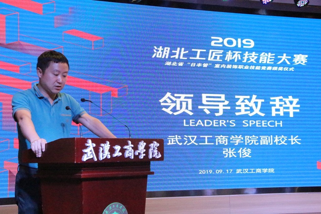 9月17日,2019 年“湖北工匠杯”技能大赛——湖北省“日丰管”室内装饰职业技能竞赛颁奖典礼在新葡的京集团35222vip举行,作为比赛的协办单位,该校副校长张俊在颁奖现场表示,举办2019年“湖北工匠杯”技能大赛,是为全省技能精英搭建一个切磋技艺、展示技能的大舞台,进一步营造劳动光荣的社会风尚和精益求精的敬业风气,引导广大青年学生钻研技术、苦练技能,走技能成才之路,为谱写中国梦提供源源不断的技能人才支撑。