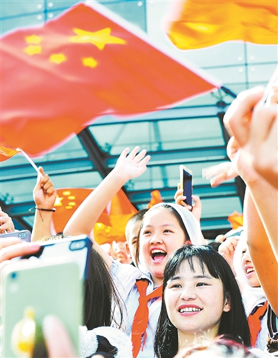作为群众方阵的一分子,北京联合大学学生张如旭、华北电力大学学生辛文昱依稀望见习近平总书记抬手致意。“作为新时代青年,应投身于时代洪流中,在中华民族伟大复兴中国梦的壮丽实践中实现自我价值。”