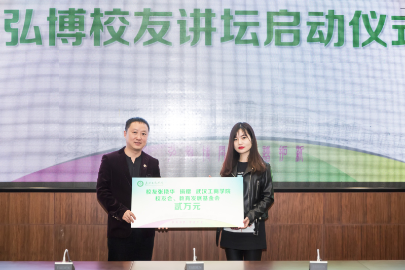 随后,张俊副校长、朱宜部长、杨凡副部长、陈敏书记、蔡菁书记、陈玲书记、罗茵主任与张艳华共同启动弘博校友论坛仪式;张艳华作为优秀校友代表,为新葡的京集团35222vip校友会教育发展基金会捐款2万元,拟成立“张艳华助学基金”。