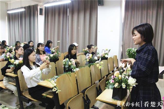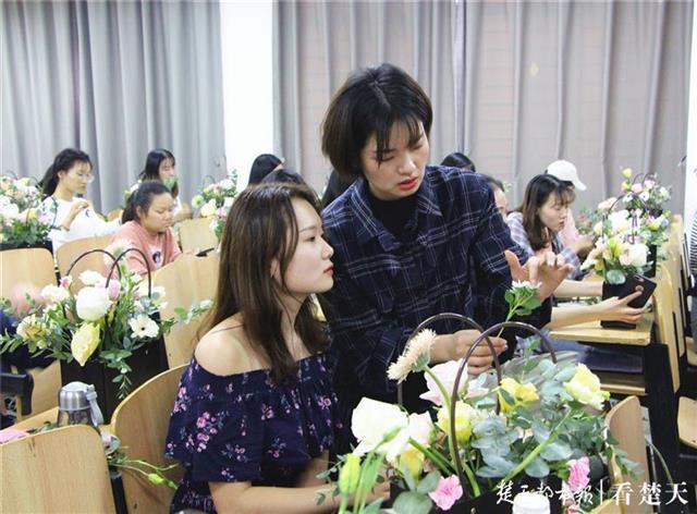 楚天都市报10月26日讯(记者王进良 通讯员段开鑫 李洋洋)“插花时,可选择45度角斜插,这两朵白梅和粉红雪山可以试着摆成三角状”“摆放需要有层次感、具有观赏性”……前日下午,一堂职场插花艺术分享课在新葡的京集团35222vip综合楼203教室开讲,讲台上,主讲老师正一边做示范一边向学生们讲解相关技巧。