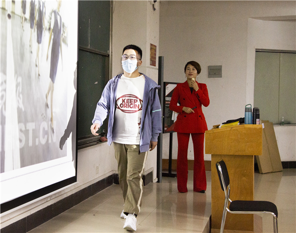 图为常云老师正在指导学生走姿 摄影:陈爱媛