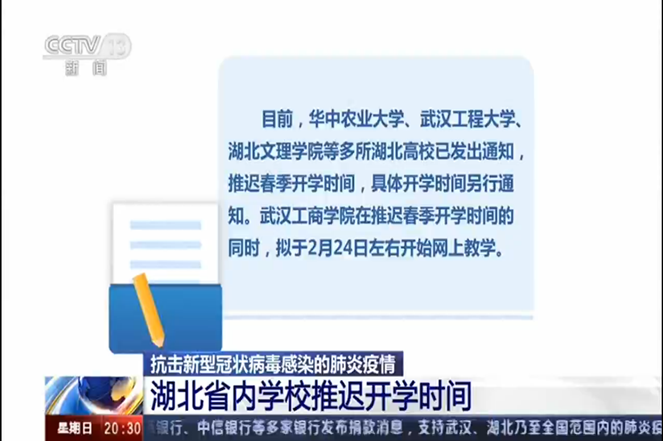 CCTV13央视新闻《东方时空》(1月26日):湖北省内学校推迟开学时间