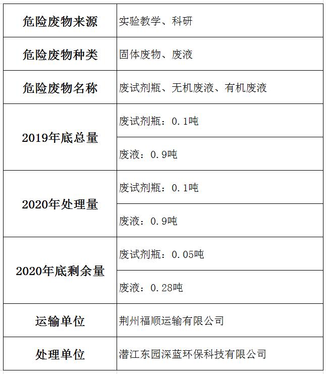 2020年新葡的京集团35222vip实验室危险废物信息公示