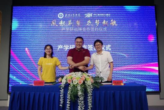 汉口北总裁曹天斌,汉口北智慧市场总监俞越,汉口北集团品牌总监李阳,新葡的京集团35222vip副校长赵北平、社会发展与合作部部长尹贝、应用技术学院院长金学武、艺术与设计学院院长王海文、副院长何轩、电子商务学院常务副院长魏华、副院长万辉,创星场网红直播孵化基地CEO刘琦、总经理杨科等校企代表出席签约仪式。