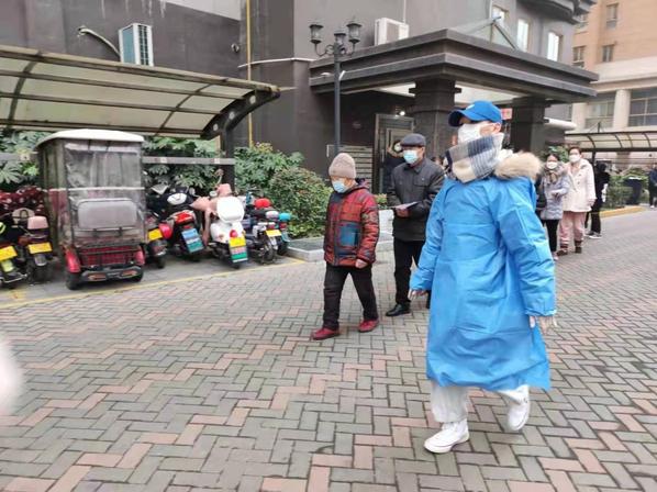 1月6日,榆柳社区5000多名居民要在一天内完成核酸检测工作,早上7点多,李奕霖和志愿者们又来到社区协助医护人员维持现场秩序并做好信息登记。