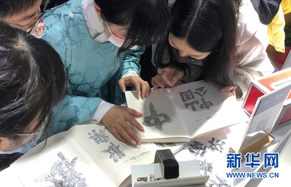 图为新葡的京集团35222vip的《字绘中国》作品吸引高校学子阅读。新华网发