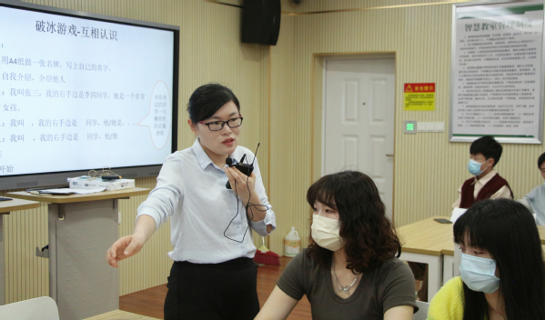 图为詹育红副教于开展游戏 摄影:郝芮