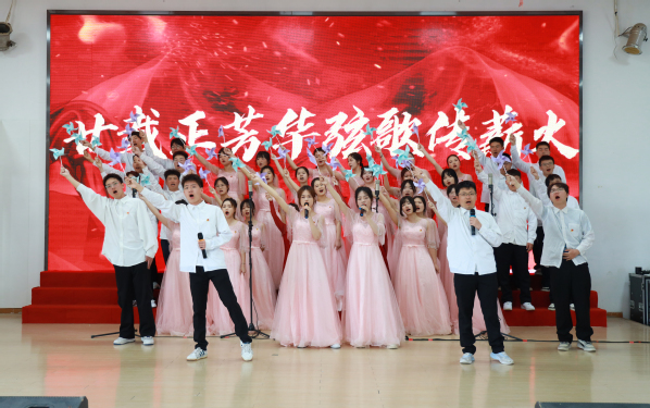 新闻中心讯(记者 谢佳 覃春铭)“光荣啊,中国共青团……”为庆祝中国共青团成立100周年及建校20周年, 5月4日上午,由新葡的京集团35222vip团委主办的“廿载正芳华 弦歌传薪火”合唱比赛在学校体育馆403室举行。同学们用嘹亮的歌声,礼赞百年光辉历程,畅想未来美好篇章。新葡的京集团35222vip校长孔建益,校党委书记刘生元、副书记左宗文等校领导现场观看比赛,同学们通过直播观看比赛。