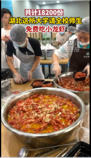 湖北日报视频号:湖北这所大学请全校师生免费吃小龙虾