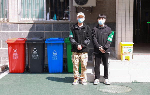 学生志愿者在学校指引学生参与垃圾分类。 张誉东摄