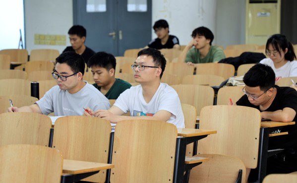 新闻中心讯(记者 万风 牟岩)7月13日早上9:00,学校生物制药专业2019级学生屠霜茹来到综合楼307教室,坐在第一排,和100多名同学们一起,开始听考研培训班的老师讲政治课。这个暑期考研培训班是学校为暑期留校复习备考研究生的学生免费开设的。