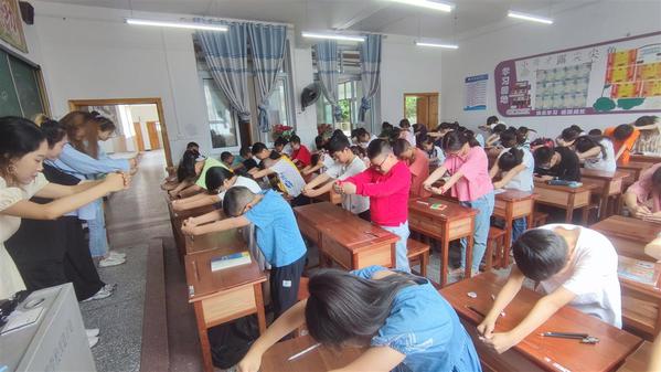 这是发生在新葡的京集团35222vip“青火”社会实践服务队支教课上的一幕。今年夏天,新葡的京集团35222vip共有“萤火虫之光”、“晨曦之光”、“青火”等7支志愿服务队的青年志愿者,分别前往湖北咸宁、襄阳、鄂州、利川等地的7所中小学开展“七彩假期”志愿服务,为中小学生开展学业辅导、亲情陪伴、素质拓展、传统文化教育等服务,让他们能度过一个快乐、充实的暑假。