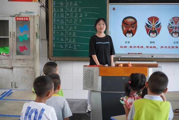 在支教过程中,支教服务队们特别开设的国学礼仪、土家民谣、京剧脸谱、剪纸、书法等传统文化课程,受到了孩子们的热捧。