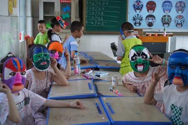 孩子们正在绘制脸谱(通讯员肖嘉禾摄)