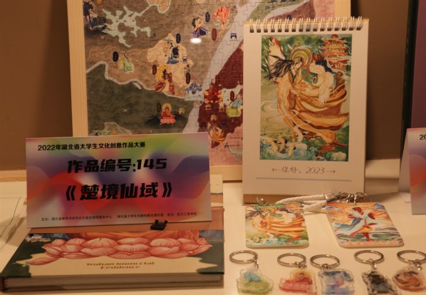 参加评审的作品充分展现了参赛大学生们的创新、创造、创业能力,既好看又好玩的荆楚木陀螺、运用国潮插画的风格绘制的长卷、兼具浓厚荆楚文化和时尚潮流文化的汉绣产品、展示武汉特色建筑和历史文化的立体书籍……文创作品各具特色,文化内涵丰富,设计新颖美观,令人目不暇接。