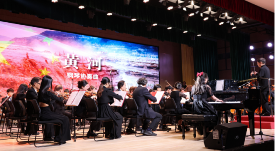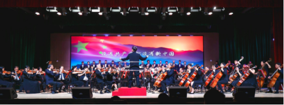 音乐会在大气磅礴的《黄河》钢琴协奏曲中拉开序幕,演奏者们通过钢琴协奏曲、管弦乐、小提琴协奏曲、混声合唱、舞蹈等多种艺术表现形式,倾情演绎了《春天的故事》《红色娘子军》《没有共产党就没有新中国》等13首大众耳熟能详的红色经典曲目及民族乐曲。在气势恢弘的音乐和热血沸腾的歌声中,表演者们用沉浸式的演出带着广大师生重温了中国共产党领导中华民族从站起来、富起来到强起来的光辉历程,极富感染力和冲击力,彰显了音乐和舞蹈打动人心的独特力量,温暖人心,催人奋进。
