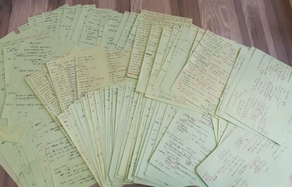 从备战考研开始,谈洋平均每天的学习时长达15个小时,用A4纸手写的笔记有1000多页,每页笔记上都用不同颜色的笔记得满满当当。