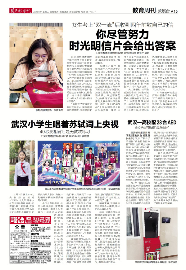 写时光明信片,是该校新生入学活动中的传统项目,老师们希望以这种“定目标、早规划”的方式,让学生们好好把握大学四年时光。桂羽勒便是如此,入校后,她就制定了考研学习规划,夯实专业基础,加强实践能力,提升英语成绩。经过不懈努力,她获得了全球品牌策划大赛中国地区选拔赛一等奖、湖北省“挑战杯”大学生课外学术科技作品竞赛一等奖、全国大学生工程训练综合能力竞赛湖北赛区一等奖等国家级、省级竞赛荣誉。还拿到了国家奖学金、校级一等奖学金、“五四”青年标兵(竞赛模范标兵)、三好学生、优秀团员等荣誉。为了挑战薄弱科目英语,她甚至尝试和叔,叔一起翻译了两本英文读物。