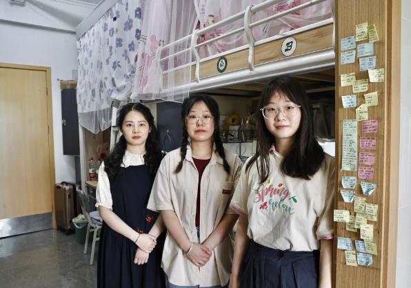 原来,她们同住在学校15栋404学生寝室,不久前3人全部考研上岸,成为同学们羡慕的“学霸寝室”。其中,张颖涵和王思思被武汉纺织大学物流工程与管理专业录取,李雅妮被武汉科技大学管理科学与工程专业录取。