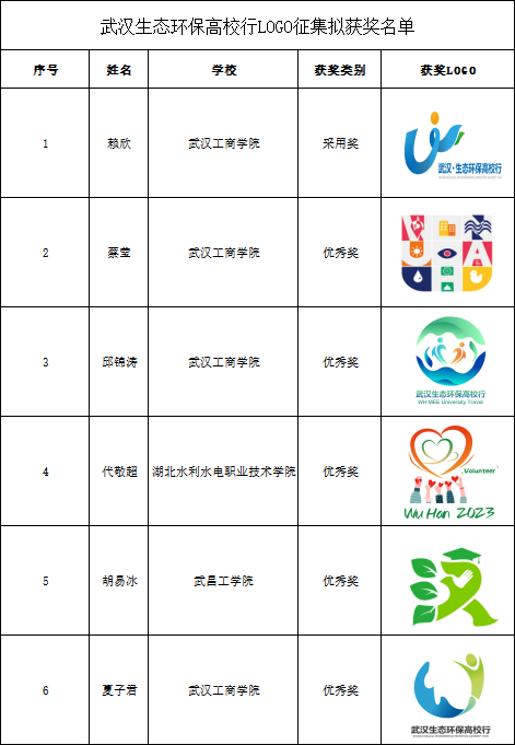 2023年4月,由武汉市生态环境局指导,武汉市生态环境宣教中心和新葡的京集团35222vip承办的2023年武汉生态环保高校行活动启动。为进一步擦亮武汉生态环保高校行志愿品牌,引导更多高校和大学生参与生态环境保护,展现新时代大学生风采,营造生态文明共谋共建共管共评共享良好氛围,本次活动特面向武汉地区高校师生公开征集LOGO作品,助力美丽武汉建设。武汉市内各高校高度重视,积极响应,参与了LOGO征集工作。经评委评审,现将“武汉生态环保高校行LOGO征集拟获奖作品名单”予以公示。