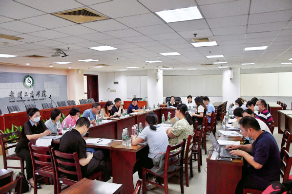 图为郭一平主任汇报2023年上半年学校本科专业自评情况 摄影:郝芮