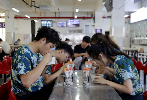 图为新生开心地吃热干面