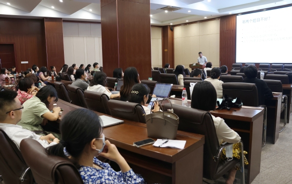 王一涛教授围绕课题的选择技巧、申报的时间节点、申报材料的规范撰写等方面同大家展开了详细讲解,并通过丰富的内容演绎和详实的材料引述,盘点了近年来的热门课题,阐述了课题申报中的共性问题。“成功申报一项课题需要教师们久久为功,持续在一个领域内深耕钻研,同时还要积极向相关专家学者‘取经’,以精益求精的态度,不断打磨申报材料。”他鼓励与会教师要积极参与课题申报,主动参加各类学术交流,做到认真务实、脚踏实地,不断提高科研能力,提升研究的宽度、深度与高度。