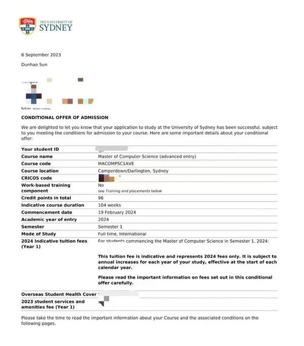 9月初,孙敦浩陆续收到了悉尼大学、阿德莱德大学的offer,综合衡量两所学校的情况后,孙敦浩决定前往世界名校悉尼大学留学深造。