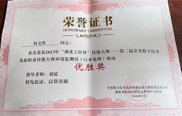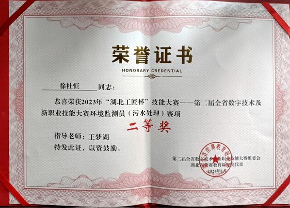 新闻中心讯(通讯员 常瑞雪)近日,2023年“湖北工匠杯”技能大赛——第二届全省数字技术及新职业技能大赛“环境监测员(污水处理)”赛项结果揭晓,新葡的京集团35222vip环境与生物工程学院环境工程专业2021级学生徐杜恒和何文欣分别荣获大赛二等奖和优胜奖。
