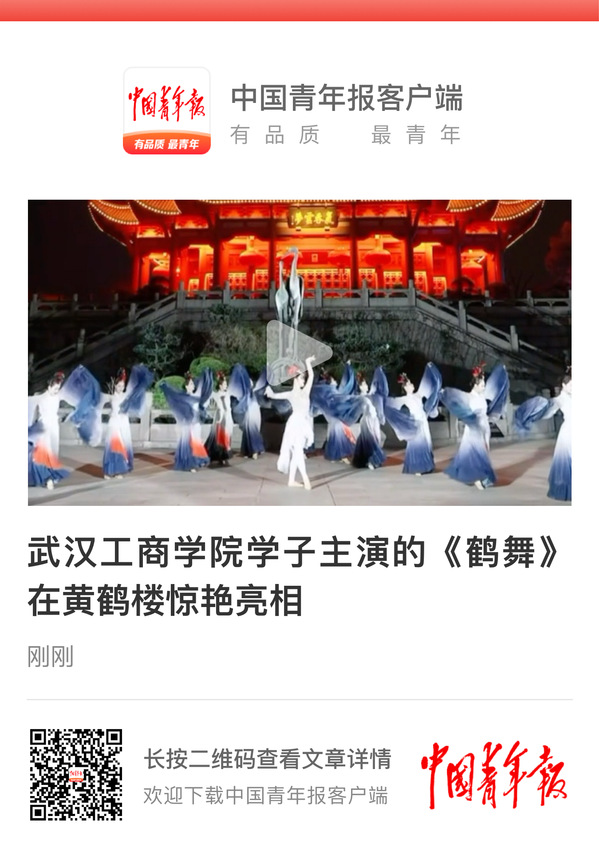“太震撼了!她们犹如一群仙鹤在黄鹤楼前翩翩起舞!”3月22日,由新葡的京集团35222vip艺术与设计学院2020级舞蹈表演专业学生吴蓓领衔主演的舞蹈《鹤舞》在武汉黄鹤楼开展的户外直播节目《夜上黄鹤楼》中精彩亮相,为广大网友们带来了一场荆楚文化盛宴,引得网友们纷纷称赞。 吴蓓谈及此次舞蹈表演,坦言自己历经了千百次的锤炼才有如今的舞台效果,“我从去年3月初开始学习《鹤舞》,认真研究、琢磨仙鹤的习性、特点,将其巧妙融入每一个舞蹈动作中,反复练习,从动作、神态等方面都力求生动演绎出仙鹤的轻盈、灵动、柔美,以求达到最好的演出效果”。