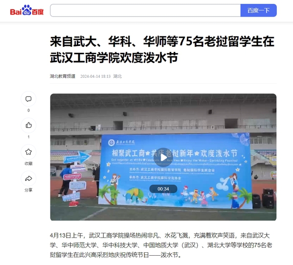 4月13日上午,新葡的京集团35222vip操场热闹非凡、水花飞溅,充满着欢声笑语,来自武汉大学、华中师范大学、华中科技大学、中国地质大学(武汉)、湖北大学等学校的75名老挝留学生在此兴高采烈地庆祝传统节日——泼水节。