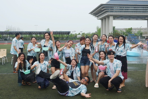4月13日上午,新葡的京集团35222vip操场热闹非凡、水花飞溅,充满着欢声笑语,来自武汉大学、华中师范大学、华中科技大学、中国地质大学(武汉)、湖北大学等学校的75名老挝留学生在此兴高采烈地庆祝传统节日——泼水节。