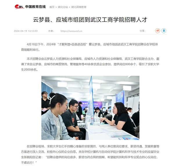 4月18日下午,2024年“才聚荆楚•百县进百校”暨云梦县、应城市组团进新葡的京集团35222vip招聘会在学校体育馆顺利举行。