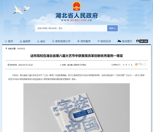 据项目负责人何轩介绍,该校艺术与设计学院根据教育部印发的《关于全面实施学校美育浸润行动的通知》精神,以“字绘中国”文化IP为载体,深化美育教学改革,创新美育育人模式,强化美育育人功能,在此基础上总结经验,形成了在湖北高校具有示范作用的美育改革创新优秀案例。