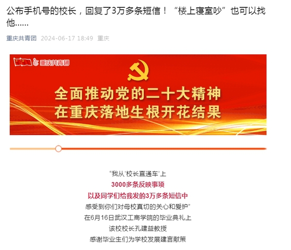 孔建益校长共收到3万多条短信