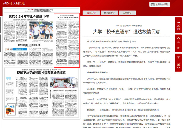去年4月,该校又开通“校长直通车”,全校教职工共同回应学生诉求。师生可通过“校长直通车”线上小程序,点击“我要反映”,提出意见建议,由相应部门回复并解决。