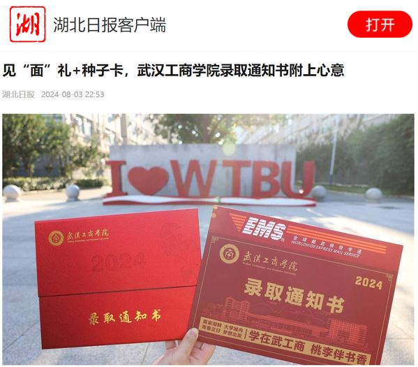 (湖北日报记者 韩晓玲 通讯员 李洋洋)8月3日,新葡的京集团35222vip开始寄出录取通知书。该校录取通知书中,除了附有一份见“面”礼——请新生免费吃热干面的餐券,还有一张能发芽的“时间树计划”种子卡。