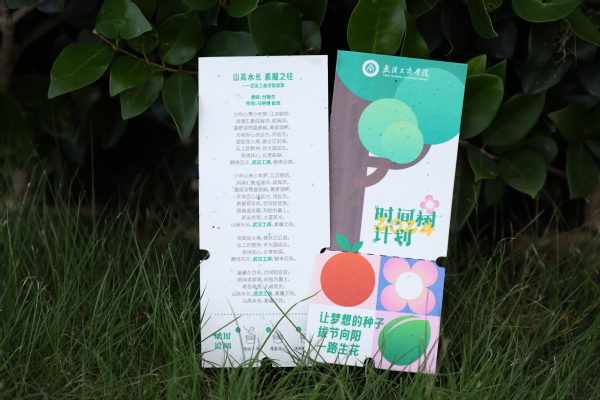 今年,该校还为每一名新生送上“时间树计划”种子卡,寓意让梦想的种子拔节向阳、一路生花。纸张印制过程中,将虞美人、太阳花、满天星、小雏菊、薰衣草等多种植物的种子随机与纸浆充分混合,在适当的环境下,纸张能够发芽,或许之后还能开花。种子卡的正面印有种子、花朵、果实、大树元素,象征蓬勃生长的过程;反面印有校歌,其中歌词“静待花开”与种子卡的寓意相呼应。