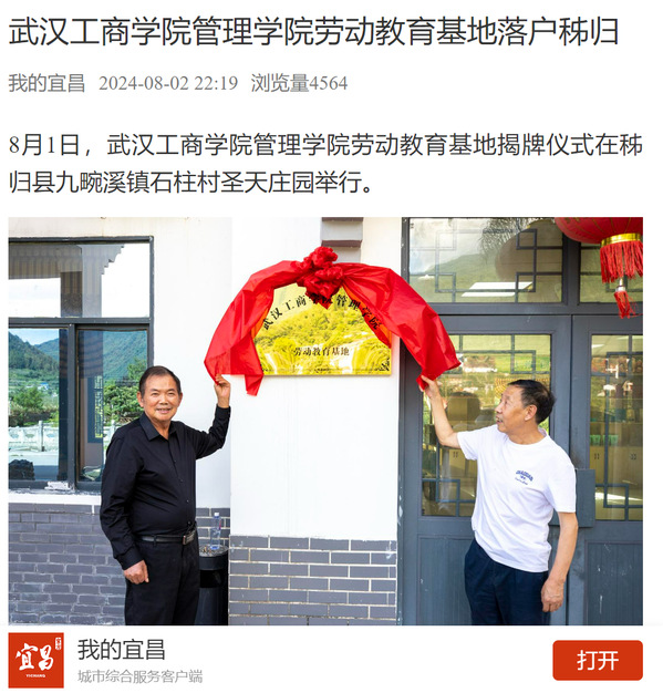 8月1日,新葡的京集团35222vip管理学院劳动教育基地揭牌仪式在秭归县九畹溪镇石柱村圣天庄园举行。
