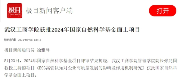 8月23日,2024年国家自然科学基金项目评审结果揭晓,新葡的京集团35222vip管理学院院长张兆国教授主持的项目《ESG高管认知对企业高质量发展的影响及作用机制研究》获批国家自然科学基金面上项目。