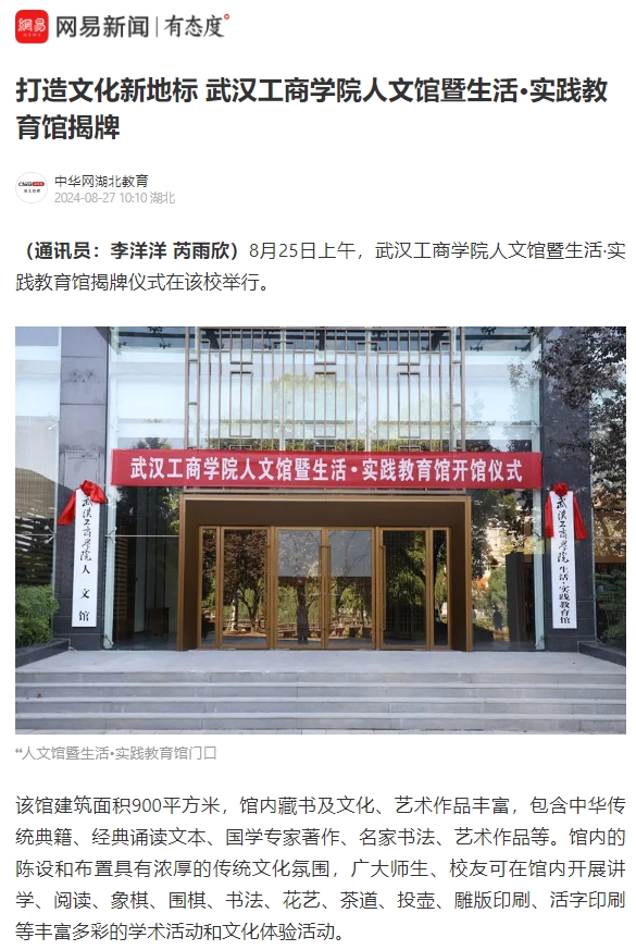 开馆当天,该校人工智能学院2023级学生曹子涵和同学们参观了该馆,在老师的指导下体验了雕版印刷术,他说,通过在人文馆学习体验感受到了源远流长的中国文明,让他仿佛置身于文化的海洋,领略到了中华文化的魅力,“我深深体会到,我们在学校的学习过程不仅需要专业知识的积累,也需要优秀文化的熏陶。”
