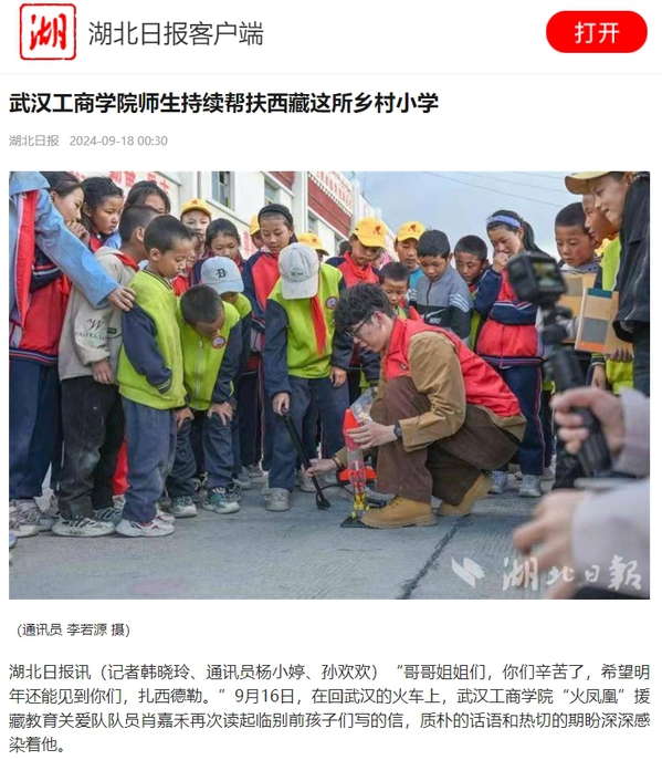 之前,从武汉来到海拔4200米的西藏康雄乡中心小学,肖嘉禾在短期支教活动中收获了满满的感动。他说:“看到孩子们明亮而炽热的目光,我就深刻感受到,我们的努力是有价值的。”