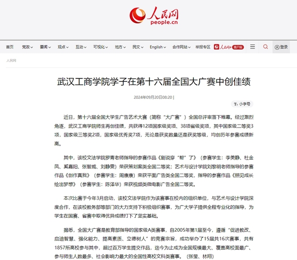 据悉,全国大广赛是教育部指导的国家级A类赛事,自2005年第1届至今,遵循“促进教改、启迪智慧、强化能力、提高素质、立德树人”的竞赛宗旨,成功举办了15届共16次赛事,共有1857所高校参与其中,超过百万学生提交作品,迄今为止成为全国规模最大、覆盖高校面最广、参与师生人数最多、社会影响力最大的全国性高校文科类赛事。(张莹、林翔)