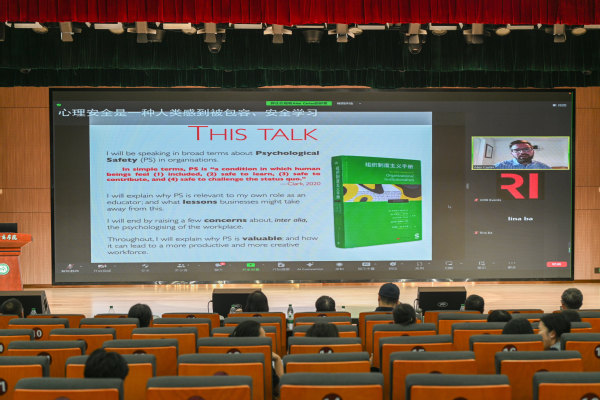 英国剑桥大学菲茨威廉学院研究员Alex Carter博士则从组织心理安全的视角,与学校师生深入探讨如何在职场的组织制度中建立和维护心理安全感,激发员工创造力,营造更高效、更具创造力和更开放的工作环境。