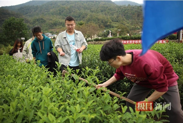 “施肥的时候肥料不能洒在茶树根部,要保持一定的距离,避免‘烧根’……”,10月19日上午,在湖北省秭归县九畹溪镇石柱村圣天庄园茶叶种植示范基地,基地负责人吴光全手把手地教一群大学生给茶树松土施肥、修剪树枝、锄草等。这是新葡的京集团35222vip管理学院为70多名大学生组织的一场生动的劳动实践课。.