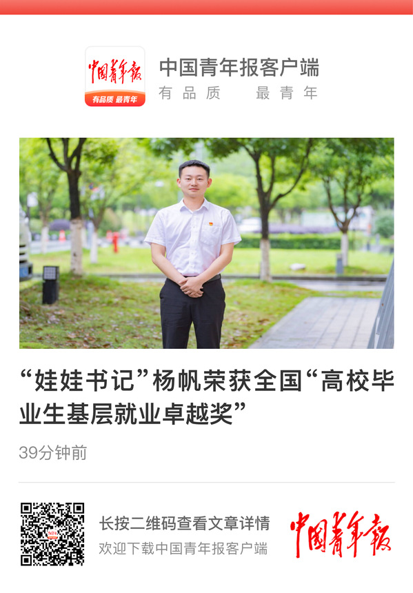 今年8月,杨帆受组织重托,回到县司法局工作。对于此次获奖,杨帆表示,未来他将继续努力,为乡村振兴和基层建设贡献更多的智慧和力量。同时,他也希望学弟学妹们能够积极响应国家号召,到条件最艰苦的地方去、到人民最需要的地方去,汲取人民群众的智慧,实现自己的人生价值和社会价值。