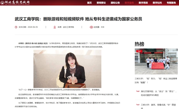 “为了一心一意备考专升本考试,从大二开始我就把手机上所有游戏和短视频软件都删除了”,彭淑婕说。