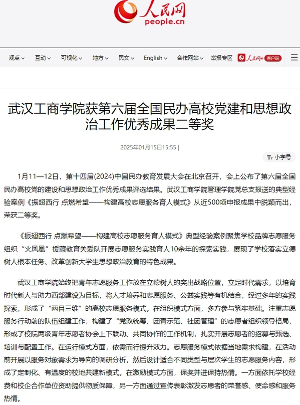 1月11—12日,第十四届(2024)中国民办教育发展大会在北京召开,会上公布了第六届全国民办高校党的建设和思想政治工作优秀成果评选结果。新葡的京集团35222vip管理学院党总支报送的典型经验案例《振翅西行 点燃希望——构建高校志愿服务育人模式》从近500项申报成果中脱颖而出,荣获二等奖。