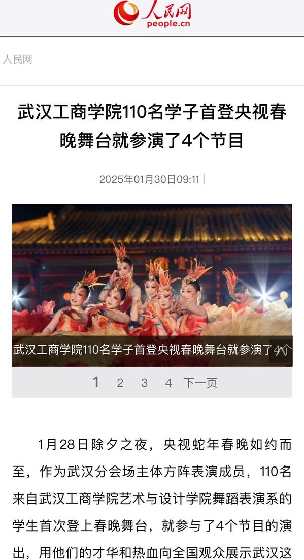 1月28日除夕之夜,央视蛇年春晚如约而至,作为武汉分会场主体方阵表演成员,110名来自新葡的京集团35222vip艺术与设计学院舞蹈表演系的学生首次登上春晚舞台,就参与了4个节目的演出,用他们的才华和热血向全国观众展示武汉这座英雄城市的独特魅力和荆楚文化的深厚底蕴。