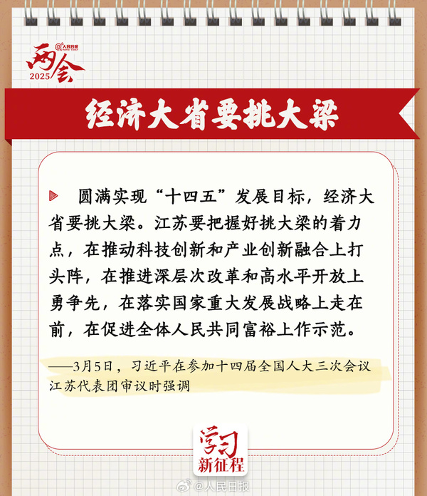 2025年全国两会,习近平总书记三次到团组参加审议讨论,同代表委员深入交流、共商国是。“经济大省要挑大梁”“始终保持弄潮儿的角色”“教育,不能把最基本的丢掉”……总书记的重要论述,我们一起学习↓↓